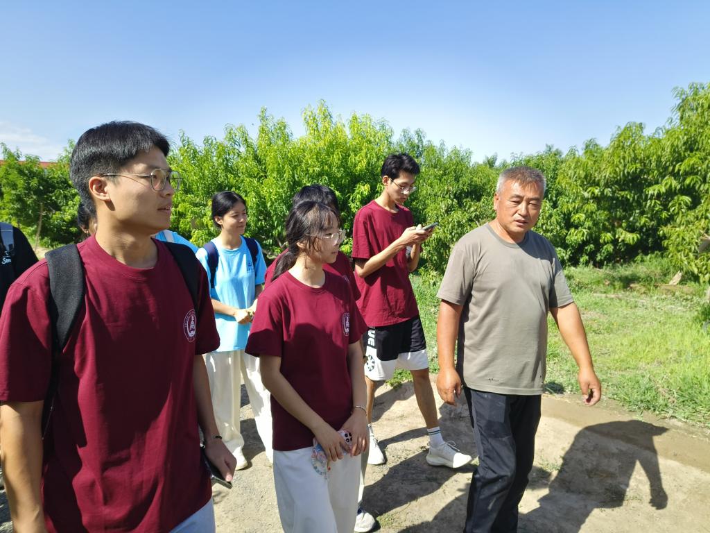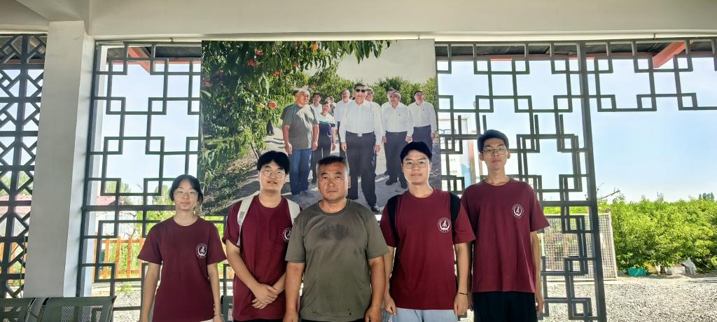 为在新时代农业发展的蓬勃生机下,紧跟习近平总书记的步伐,近距离深刻体会兵团人开垦边疆、建设边疆的艰苦创业精神。7月17日beat365官方网站赴新疆团场“弘扬兵团精神·传承红色基因”暑期社会实践队来到位于新疆生产建设兵团八师一四三团九连的倪家桃园进行参观,了解兵团基层组织建设、发展特色农业、促进兵地融合发展等情况。