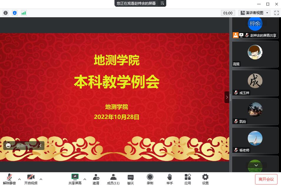 2022年10月28日晚,beat365官网以腾讯会议的方式召开2022-2023学年秋季学期线上教学例会。beat365官方网站副院长邵广周,各系教学副主任、实习副主任,学院专业建设及教学秘书赵梓余、教务办高策老师参加会议。会议由教学秘书赵梓余主持。