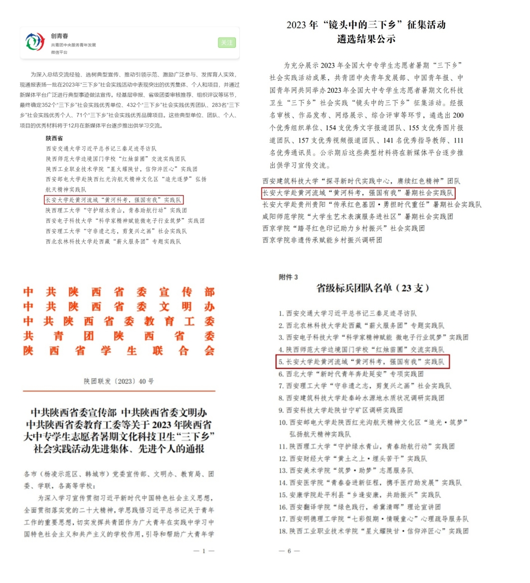 2023年暑期社会实践活动共立项12支暑期社会实践队伍,社会实践活动获团中央专项5项,社会实践参与人数551人,活动成效显著,形成了社会实践成果报告或论文17篇,社会实践共被报道346篇,其中国家级媒体218篇,省级媒体报道50篇,市级媒体6篇,中青网报道24篇,宣传报道广泛深入,活动得到多家主流媒体报道,取得了良好社会影响;新建社会实践基地2个,共建社会实践基地8个,并能够以此为依托定期组织学生开展相关社会实践活动,在当地政府和社会各界产生一定影响。其中,beat365官方网站赴黄河流域“黄河科考,强国有我”实践队荣获2023年社会实践“全国优秀团队”、“省级标兵团队”、镜头中的三下乡“优秀文字团队”荣誉称号。