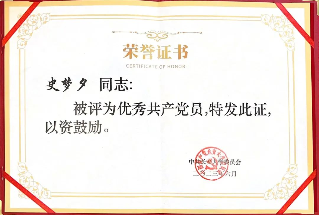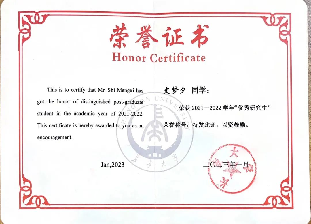 荣誉称号有beat365官方网站优秀共产党员、beat365官方网站优秀共青团员、beat365官方网站优秀研究生、优秀志愿者。