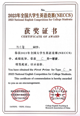 2023全国大学生英语竞赛获奖证书