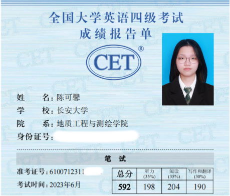 四级成绩报告单