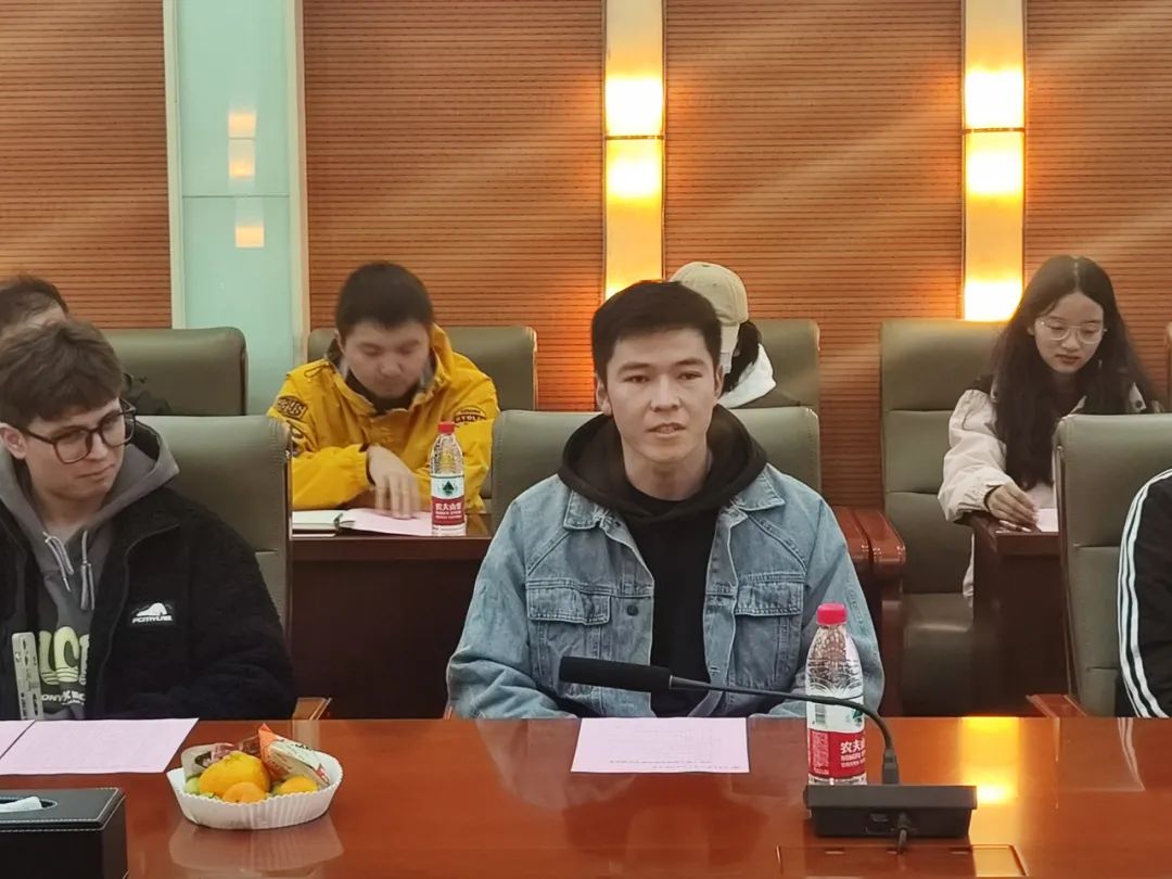 座谈交流环节,2020级推免学生苏晓成向低年级同学分享了自己的学习生活经验。苏晓成同学介绍了自己保研推免的心路历程以及如何与舍友友好相处,建议同学们坚定学习目标,不要轻言放弃。2021级的霍加恩别克·海拉提别克同学分享了他选择投身军旅的原因以及这段经历如何塑造了他。他深感在部队中接受的锻炼对他产生了深远的影响,不仅增强了他的身体素质,还提高了他的自律能力,并帮助他形成了良好的团队合作精神。2021级“博雅之星”获得者韦森同学则分享了在大学生艺术团的工作经历,他鼓励民族学生要充分发挥自身优势,积极参与文化艺术活动,在参与中找寻热爱。座谈会在轻松愉快的氛围中逐渐向好。随后,民族学生依次发言,畅谈入学以来的成长进步、收获感想,对学院老师和同学们提供的帮助和关爱表达了诚挚的感谢,与会老师认真聆听同学们的发言,尽心解答他们在学习和生活上的困惑。