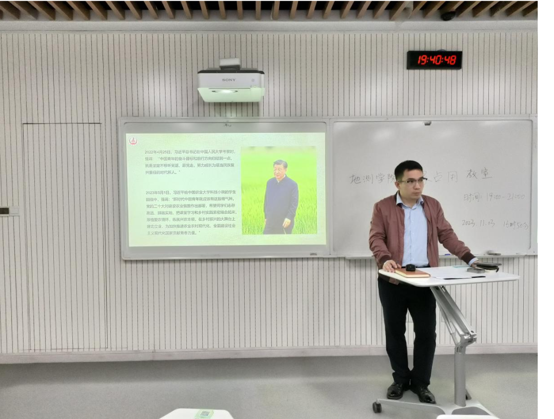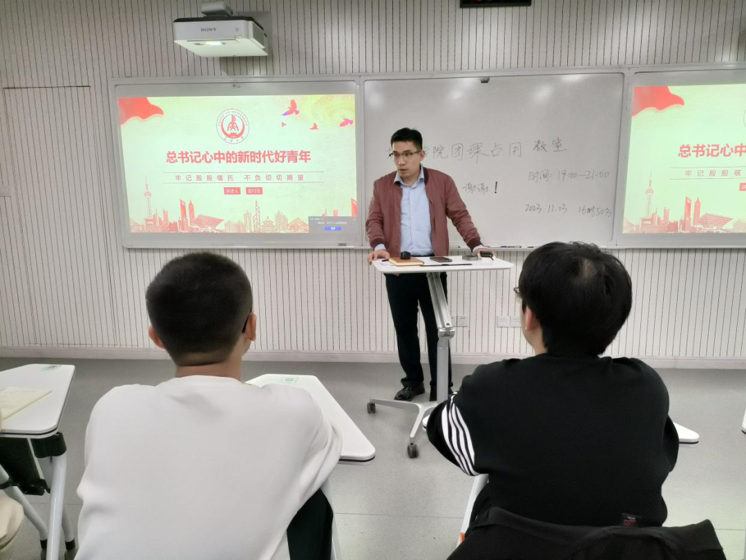 苗老师以“总书记心中的新时代好青年”“牢记嘱托,不负期望”为主题,从新时代做有理想、敢担当、能吃苦、肯奋斗四个方面,为入团积极分子讲述了新时代好青年的优秀事迹,要求入团积极分子学习领会习近平总书记的肯吃苦精神、裴先锋的工匠精神、谢小玉的担当精神和苏翊鸣的奋斗精神。苗老师引用2013年至2023年这11年间习近平总书记对于青年的寄语,要求入团积极分子需要牢记殷殷嘱托、不负切切期望,树立不忘初心跟党走的信念,培养勤奋学习的精神,淬炼敢于担当的品质,练就过硬本领,勇担时代重任,为中华民族伟大复兴而奋斗。