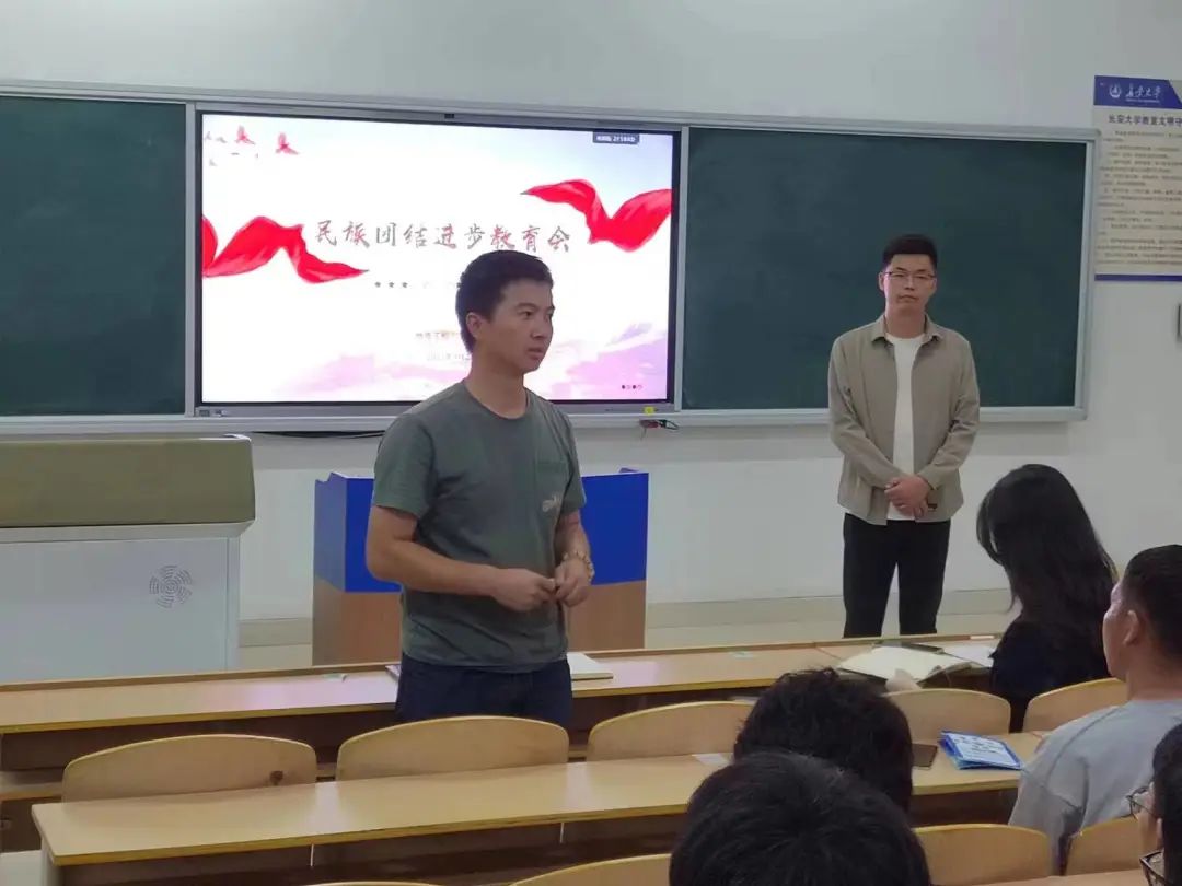为持续铸牢中华民族共同体意识,促进各民族学生交往交流交融,上好民族团结教育“开学第一课”,2023年9月22日,beat365官方网站在WH2105开展“星辰下的石榴红”新生民族团结进步教育会。2023级辅导员杨东民、侯梦阳、2021级兼职辅导员王润涵以及40余名民族学生代表参加活动。