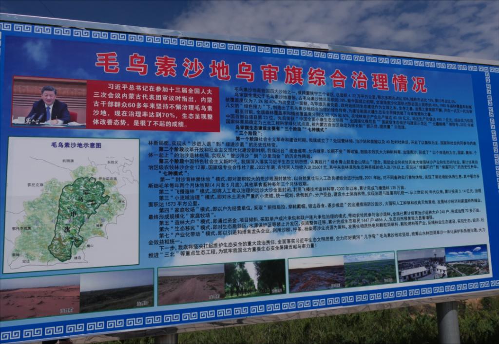 最后,实践队跟随科考队来到了乌兰陶勒盖沙地保护区,乌审旗林草局局长吕琪为队员们讲解了乌审旗生态建设的“三个阶段”“七个模式”,并表示下一步,乌审旗将坚决扛起维护生态安全的重大政治责任,全面落实习近平生态文明思想,全力打好黄河“几”字湾毛乌素沙地攻坚战,统筹山水林田湖草一体化保护和治理,大力推进“三北”等重点生态工程,为筑牢我国北方重要生态安全屏障贡献乌审力量。