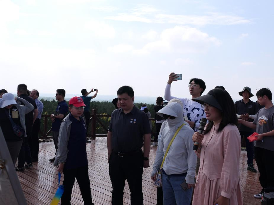 科考队第一站来到内蒙古成吉思汗国家森林公园天骄生态文化林,此园建于2015年1月,位于内蒙古自治区鄂尔多斯市伊金霍洛旗中部,是全国唯一以沙地人工植树造林为主体的国家级森林公园。