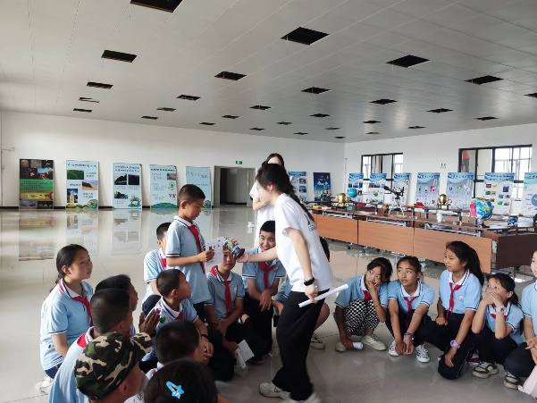 本次实践展板内容分为“认识地球”和“水的科普”两部分,主要由暑期社会实践队七名队员负责讲解。在讲解过程中,为了提高同学们的积极性,帮助小朋友们更好的理解拓展的科学知识,讲解员们设置了趣味小问题,鼓励同学们用自己的语言组织答案,并给表现突出的同学奖励铅笔、本子、棒棒糖等小奖品。