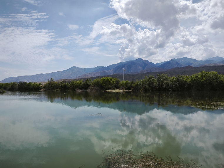 随后,实践队又参观了贵德黄河清湿地公园。该公园依托黄河森林公园和湿地而建,东起尕让乡阿什贡村,西至拉西瓦水电站,全长28000米,南至西久公路,北达原宁果公路,平均宽2100米,总面积8.32万亩。在独特的地理和自然环境作用下,形成了美丽壮观的溶蚀地貌和丹霞地貌。科考队李培月老师在考察中提到:“对于黄河上游生态资源不仅要进行保护,同时在生态承载量允许的情况下进行适度的开发,让人们能够真正地亲近自然,进而热爱自然,从而保护自然”。