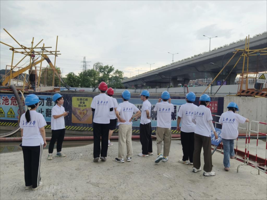 机械化工程公司副经理陈向带领实践队师生现场观摩市政工程公司项目,实践队师生通过与生产一线工作人员直面对话,对工程实践产生更深一步了解,从而进一步把准社会和市场实际需求方向,打破就业信息壁垒,为毕业生挖掘更多岗位资源,提供更多优质和精准的就业信息。
