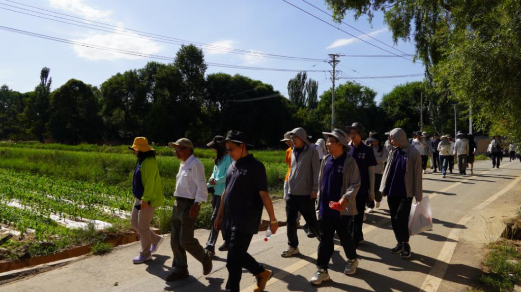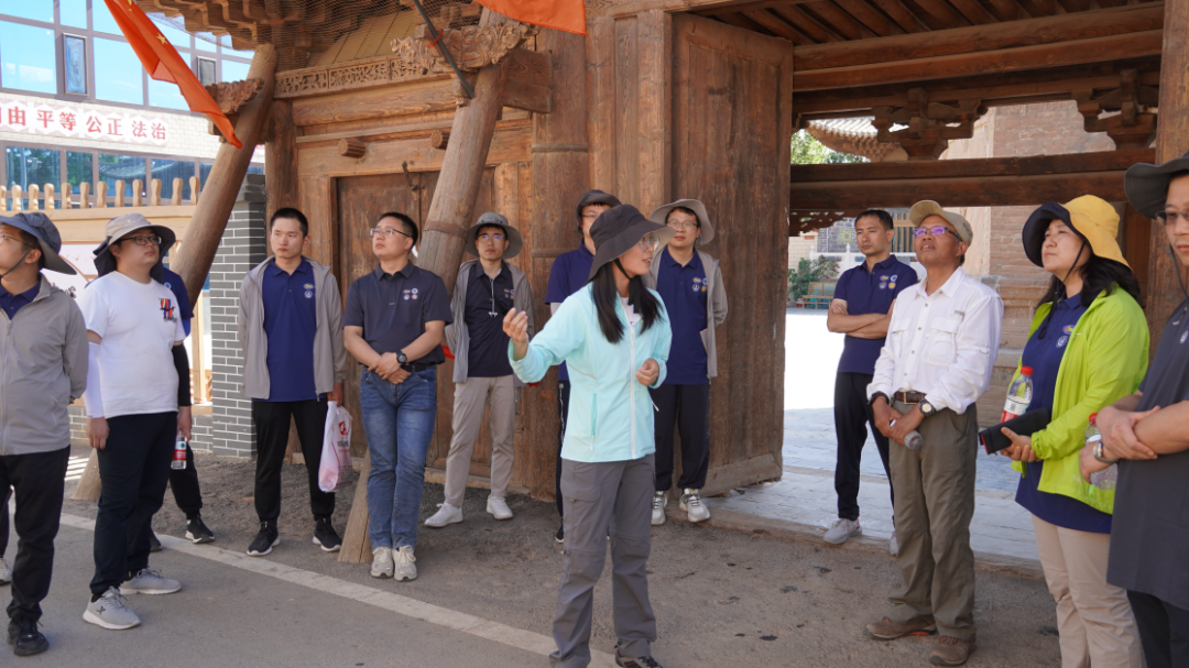 随后,实践队考察阿河滩地质文化村的区域生态问题。张绪教教授介绍,建设地质文化村既是贯彻落实习近平总书记“绿水青山就是金山银山”的生态文明思想的实践探索,也是积极响应党中央“黄河流域生态保护和高质量发展”国家战略的重要举措。地质文化村建设从生态环境保护与可持续发展角度出发,不仅构建了优美乡村生态环境,而且乡村旅游业也在生态保护中得以发展。暑期社会实践队队员切实感受到了地质文化村建设从生态振兴方面赋能乡村振兴,加强生态宣教,牢牢树立生命共同体意识,做到“百姓富”、“生态美”。