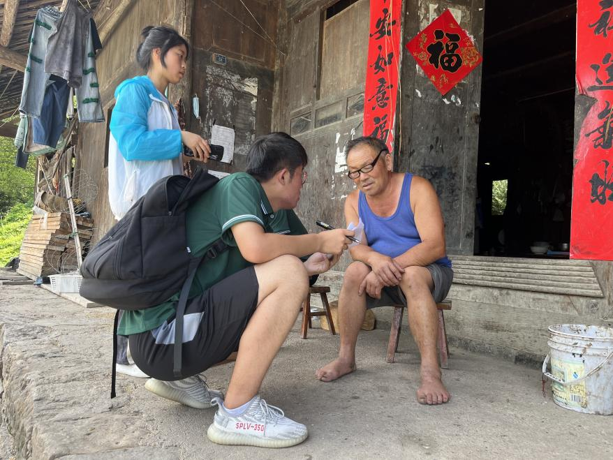 上午,实践队员深入苗寨,通过问卷调查和面对面访谈,与家长、学生探讨了普通话在家庭、学校和社区中的使用频率和方式,聆听了居民对普通话推广的期望和需求,了解了他们在普通话学习过程中遇到的困难和挑战。