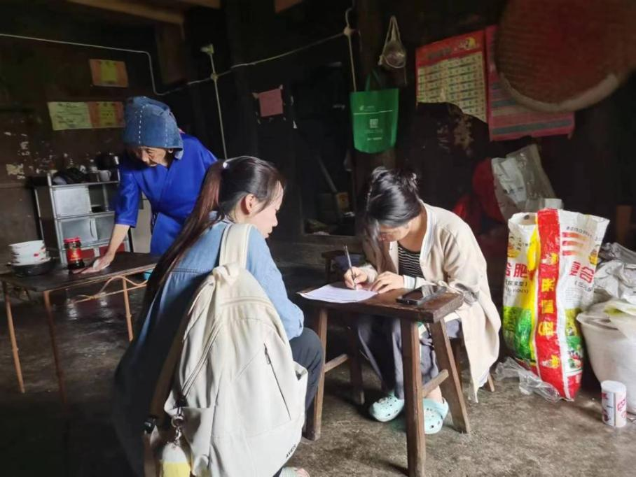 实践队员帮助村民填写推普问卷