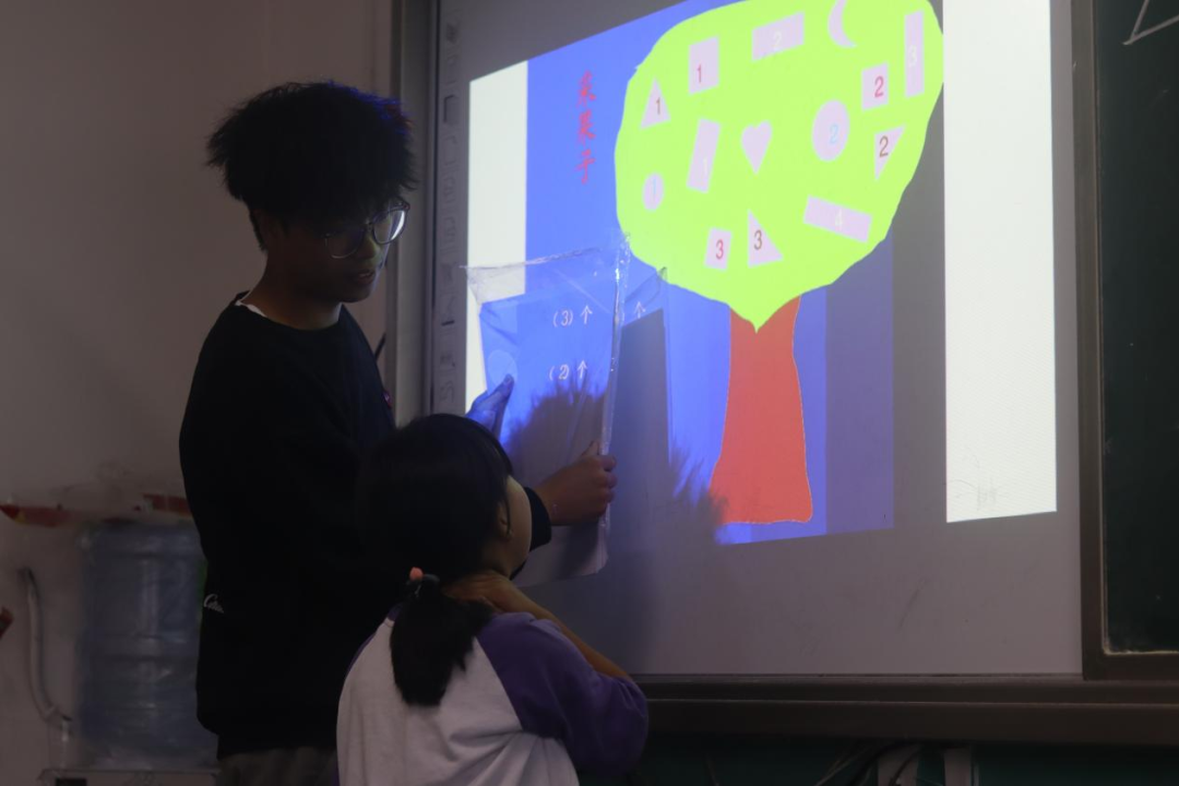 实践队员和孩子在数学课上互动