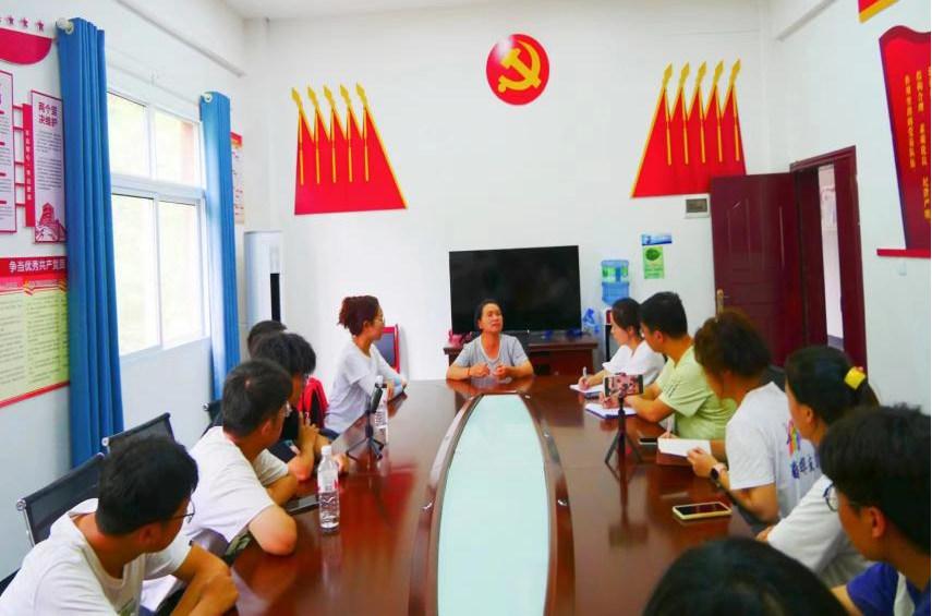 在实地调研过程中,团队有幸采访到了梅香村村支书顾兰花。在访谈中,实践队成员就苗绣与其他刺绣之间的区别、苗绣目前的困境和如何保护与发展苗绣等问题向顾书记进行请教。顾书记表示,苗绣和藏绣等其他绣种最大的差异在于其代表性和传承性不同,苗族没有自己的文字,因此苗绣主要承载着图腾的传承,例如有些苗绣记录了苗族人的迁徙,将苗族迁徙过程中的食物和衣物等绣在服饰上。除此之外,顾书记讲到了本村苗绣产业的发展历程,从贫穷落后的山村,通过传承、发扬苗绣技艺,成功使得梅香村走向特色产业引领乡村致富的道路上,并成为凯棠镇第一个摘掉“贫困”帽子的山村。在苗绣文化传承方面,对于苗绣目前遇到的最大的困境,顾书记认为,目前刺绣的多数为老年人,年轻一辈的人中已经很少有相关的手艺人,究其根本还是目前从事苗绣工作很少能带来可观的经济收益,往往是仅凭情怀来延续,这也是一件很可怕的事情。而要想更好地保护和发展苗绣,将苗绣与现代元素结合后推出去可能是一种很有效的方法,例如将苗绣的部分元素作为现代服饰和工艺的点缀。