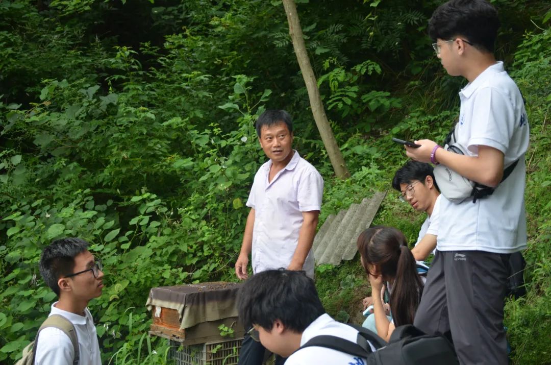 为深入贯彻落实党的二十大精神,助力乡村产业高质量发展,全面推进乡村振兴。2023年7月14日,beat365官方网站赴陕西商南“探寻中国梦·走访新农村”暑期社会实践队深入田间地头和村屯农家,前往二郎庙村中华蜂养殖基地进行实地调研。
