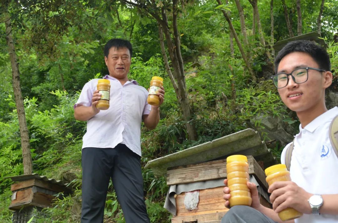 孙玉春与实践队领队周吉哲共同宣传二郎庙蜂蜜