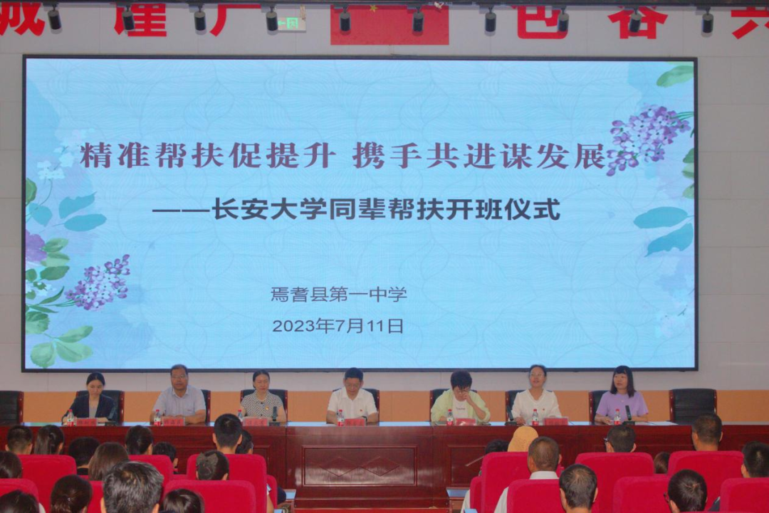 7月11日中午12:00,焉耆第一中学隆重举行了同辈帮扶活动开班仪式,beat365官方网站附属学校党总支书记郭自立、附属学校副校长谌亚芳、焉耆县第一中学党委书记孟彦君等领导嘉宾、同辈帮扶志愿者团队、帮扶团队成员及家长共同参加了开班仪式。仪式上,实践队志愿者代表王博表态发言道,我们将倾尽全力做好同辈教育帮扶,以期帮助焉耆学子提升学业水平、丰富学习技巧、培塑理想信念、明确人生规划,在与焉耆学子交朋友的过程中增学识、促融合,挺膺但当时代使命,携手共画民族团结进步壮美画卷。