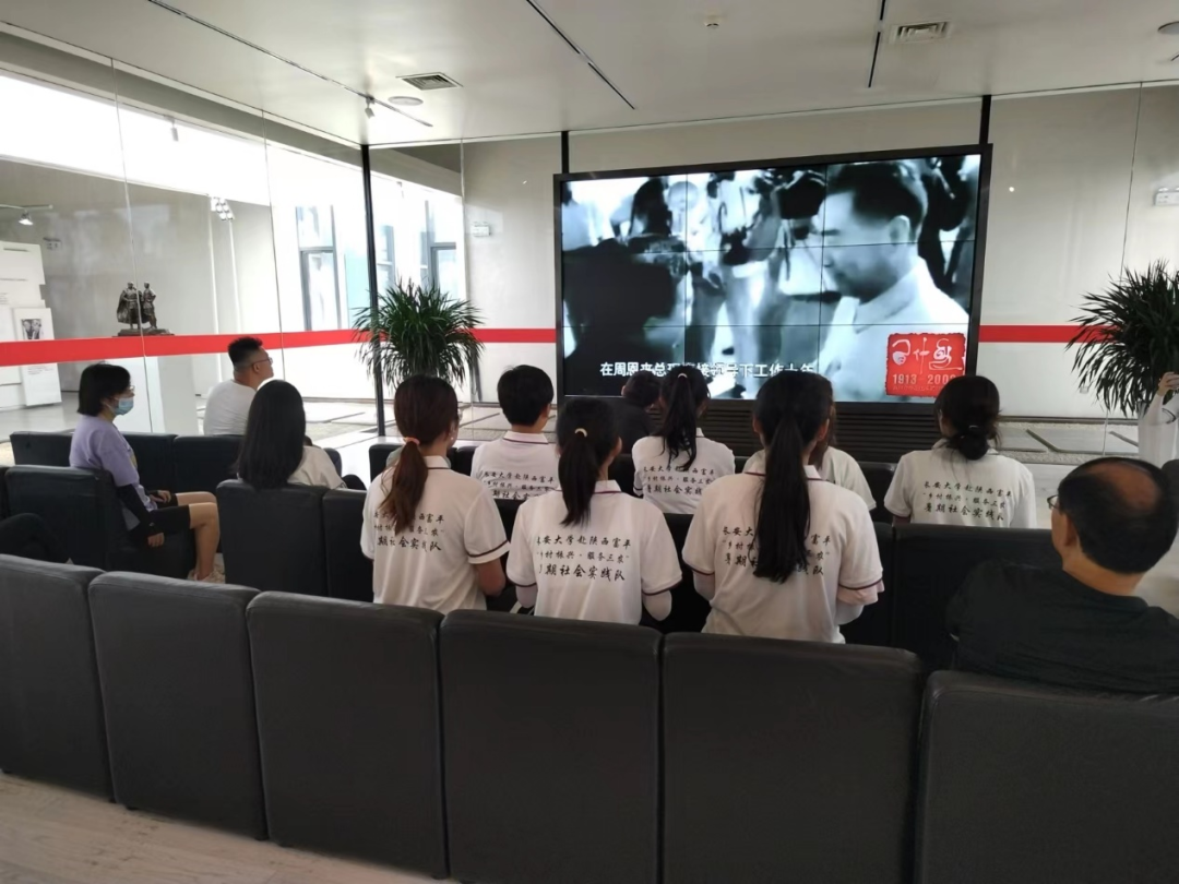 图为实践队员在观看习仲勋生平影像资料
