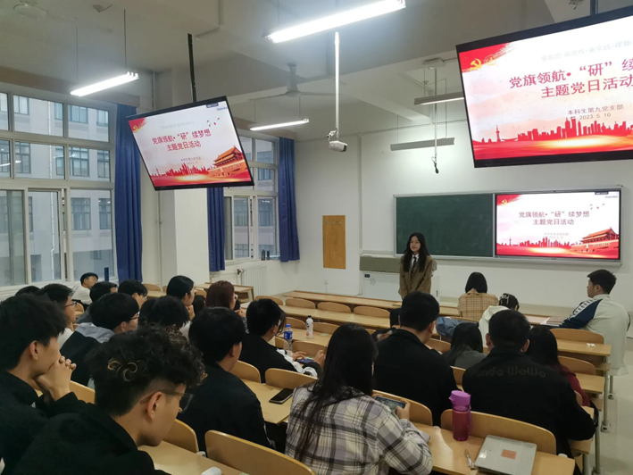为扎实开展主题教育系列活动,充分发挥党支部和学生党员的先锋模范作用,本科生第九党支部于5月10日在鸿远2303教室召开“党旗引领·研续梦想”主题党日活动,支部全体党员、辅导员余智勇、思政班主任杨梦瑶和部分低年级本科生共同参与此次活动。活动由支部副书记左晓文主持。