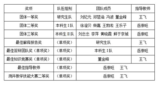 我校参加第七届全国大学生测井技能大赛获奖情况