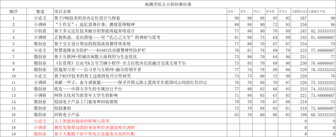 初赛成绩(红色代表弃权)