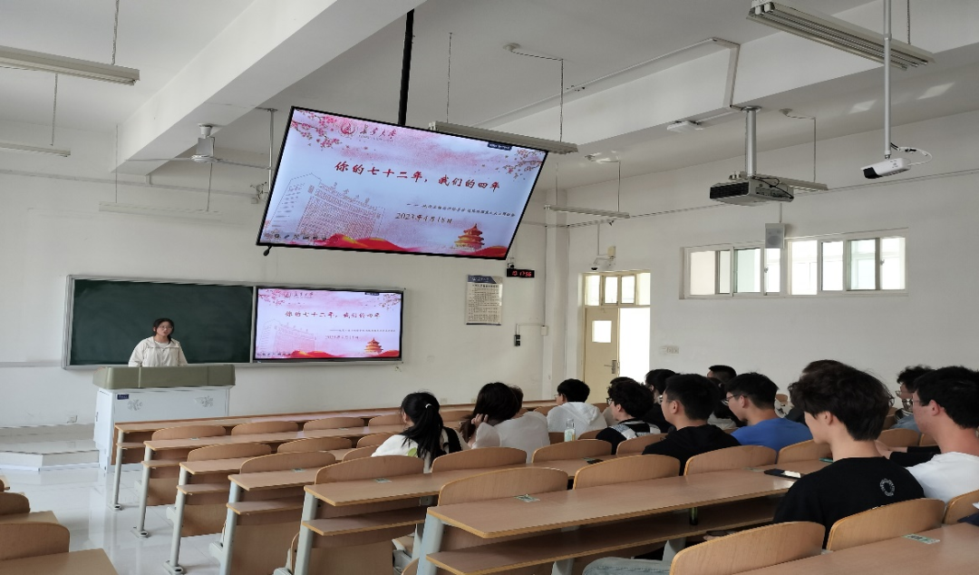 2023年4月18日,我校迎来建校72周年。为教育引导广大学生深入学习贯彻党的二十大精神,落实立德树人根本任务,增强爱校荣校意识,2023年4月18日10时,beat365官方网站2022级地球物理学类204班于WH2302召开“青春践行党的二十大,爱校奋进新征程”主题团日活动,地物4班全体同学参加了本次团日活动,本次活动由团支书潘雨婷主持。