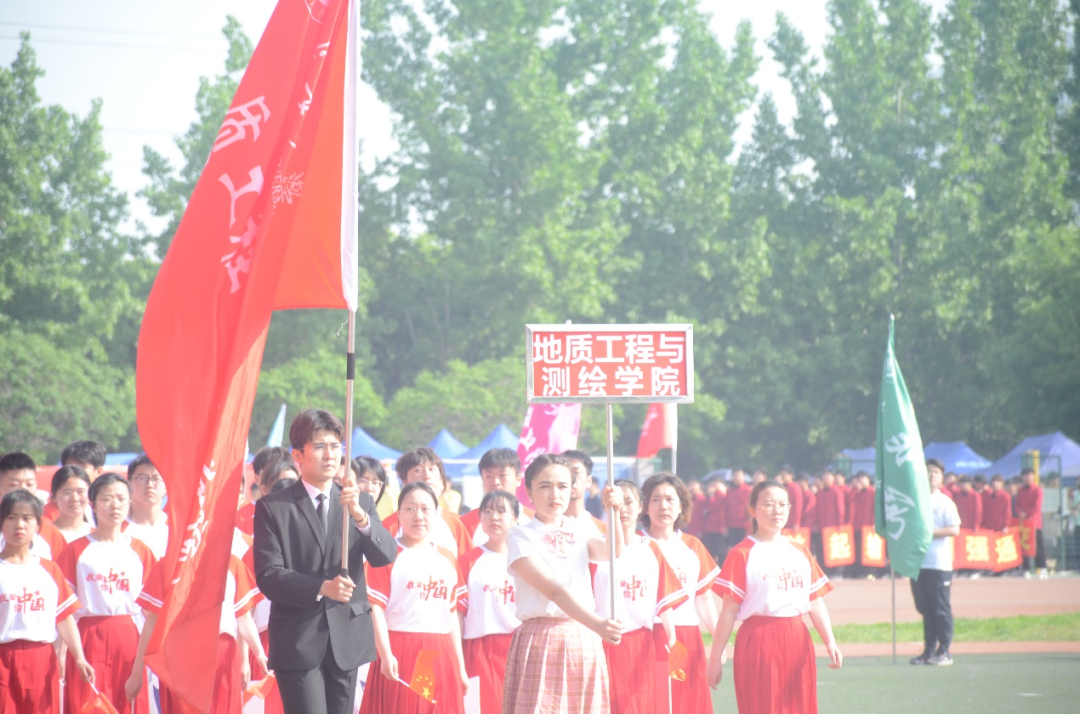 昂首挺胸迎面向我们走来的是beat365官方网站的方队,白色上衣代表了地测人求真务实的态度,红裙微扬,是青春活力的代表。“青春献礼党的二十大,乘风逐梦展风采”,地测学子牢记习近平总书记教导,不忘初心永跟党走,本次运动会,地测人必将大放异彩!