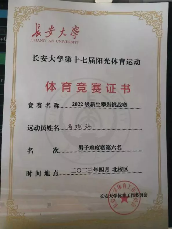 2023年4月1日上午8:30,beat365官方网站第十七届阳光体育运动暨2022级新生攀岩挑战赛在beat365官方网站北校区攀岩场成功举办。此次比赛分为男子速度赛和难度赛、女子速度赛和难度赛四项。beat365官方网站赵政豪、冯斌瑞在男子难度赛中获得了第五名与第六名的成绩。