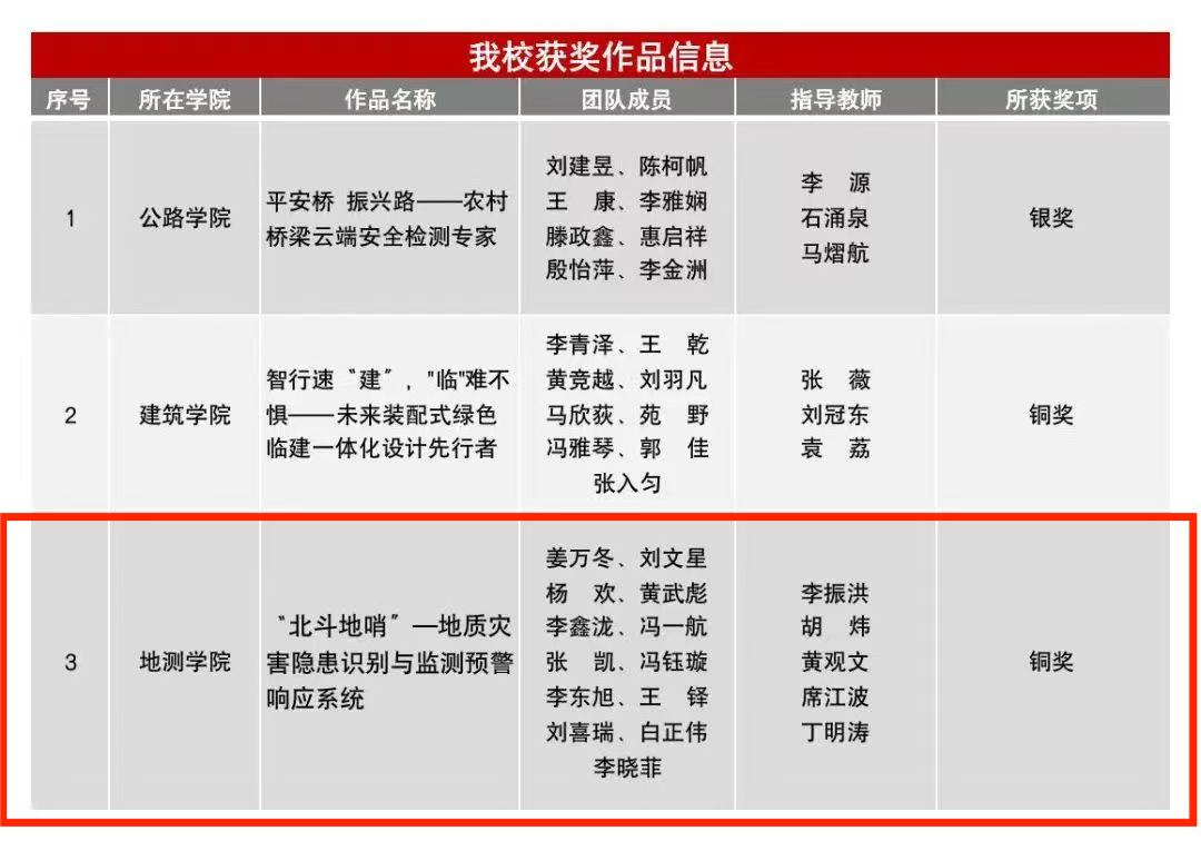 3月19日,由共青团中央、教育部、人力资源社会保障部、中国科协、全国学联、北京市人民政府主办,北京理工大学、共青团北京市委、北京市房山区人民政府承办的第十三届“挑战杯”中国大学生创业计划竞赛闭幕会在北京理工大学举行,我校报送的作品《“北斗地哨”—地质灾害隐患识别与监测预警响应系统》荣获全国终审决赛铜奖。