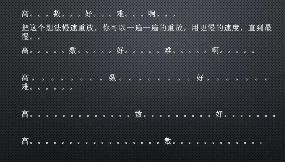 当你意识到你有某一个想法的时候,不要再继续想下去,而是倒带,把思绪慢速重放。一遍一遍地重放,速度越来越慢,直到不能再慢为止,就像下面这样。