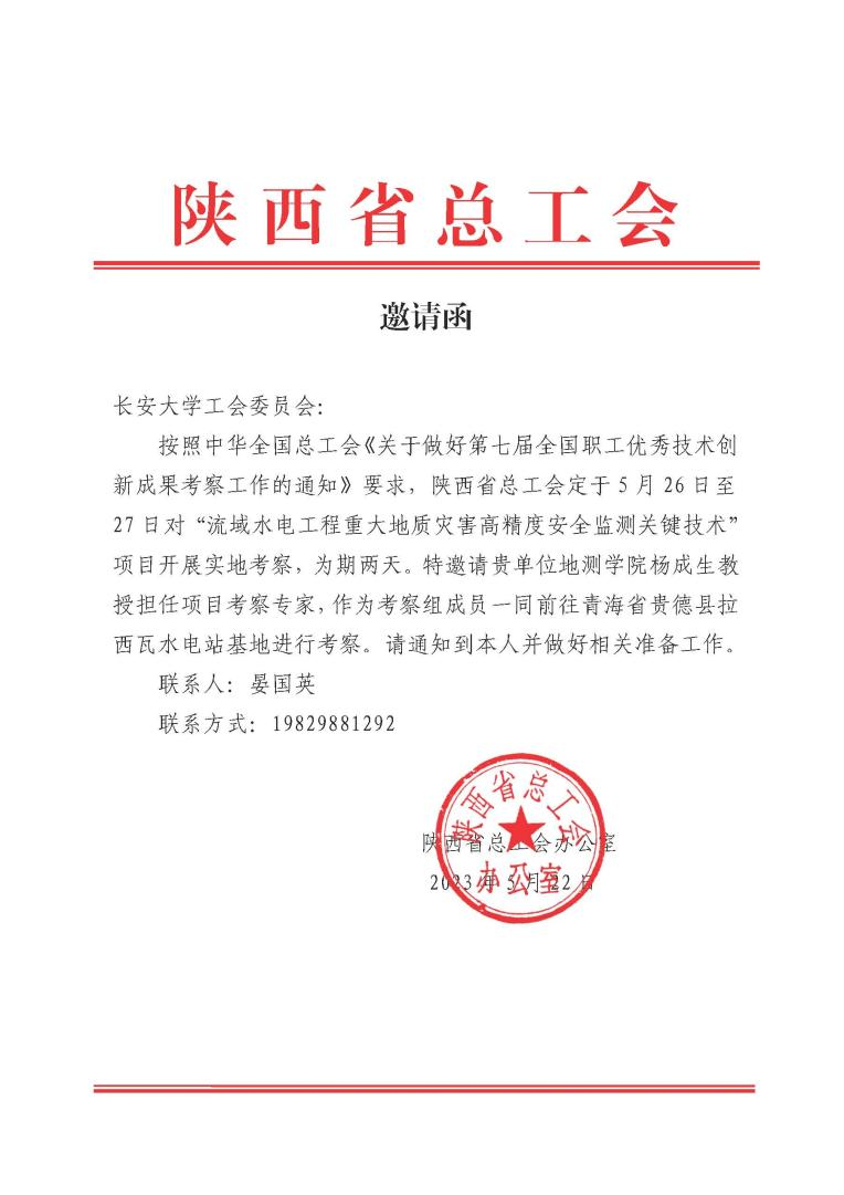 受中华全国总工会的委托,陕西省总工会于2023年5月26日至27日对“流域水电工程重大地质灾害高精度安全监测关键技术”项目开展实地考察,beat365官网杨成生教授受邀担任项目考察专家。