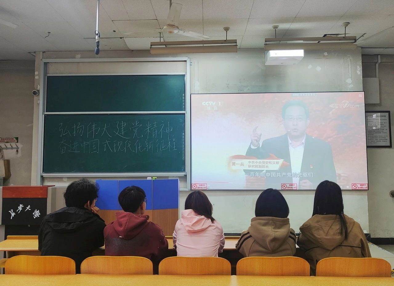 随后,小组成员观看了《党课开讲啦》节目第2期《伟大建党精神》。在中共中央党史和文献研究院副院长黄一兵的讲述中,小组成员切实感受到革命先辈的爱国情怀,汲取到强大的精神力量。观影后小组成员积极讨论当代中国青年应该如何投身于全面建设社会主义现代化国家火热实践中并踊跃发言。