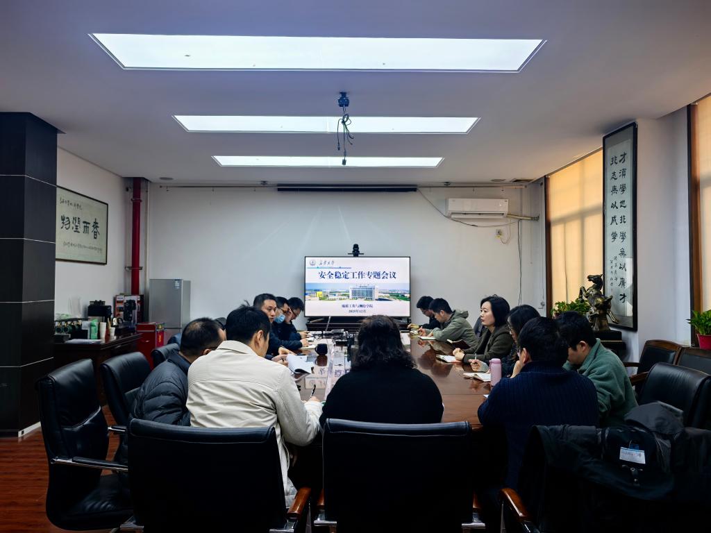 2025年12月17日下午,beat365官方网站于南校区东院会议室召开安全稳定工作专题会议。会议由学院党委副书记、副院长、纪委书记欧阳韬主持,学院领导班子全体成员、各系室主任、党支部书记及科级干部参加会议。